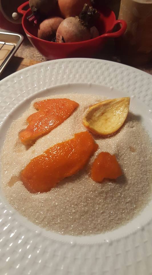 Add the berries to the jar, add the vodka, put the lid on the jar, Shake it up and put it somewhere cool and dark. I put my jar in a paper bag on my baker’s rack. Give it a shake every day or two. Let it sit for 4-6 weeks. I let mine sit for 6 weeks.