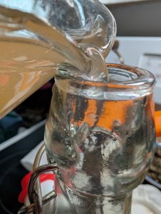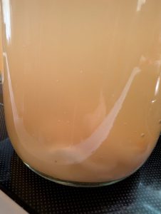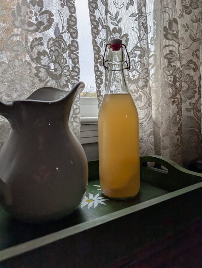 It smells delicious. I’m so happy to have 2 quarts of this wonderful vinegar. Here are a couple of photos. I hope you will try to make apple cider vinegar the next time you peel a few apples!